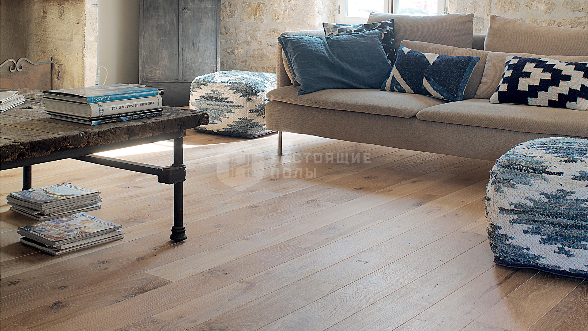 Финишная обработка представляет собой бесцветное натуральное масло, оберегающее природный светло-медовый цвет французского дуба и подчеркивающее прожилки брашированной древесины и другие особенности селекции, будь то сучок или трещинка. Такой тип покрытия намеренно используется при производстве коллекций с пестрой сортировкой древесины, чтобы не терялось ощущение натурального дерева.