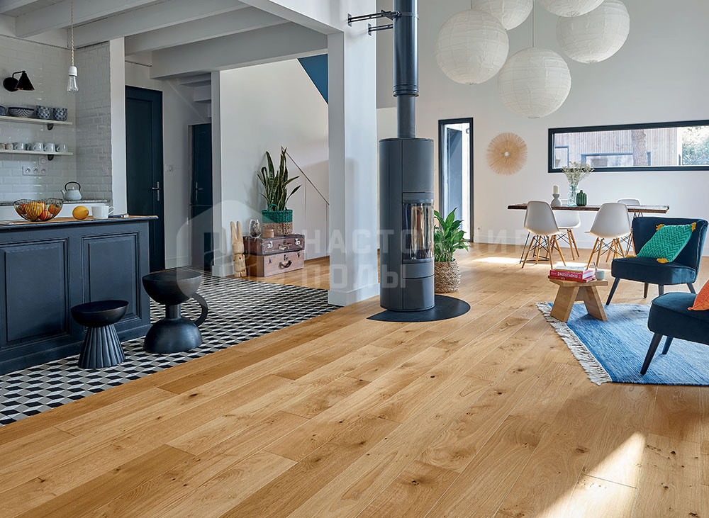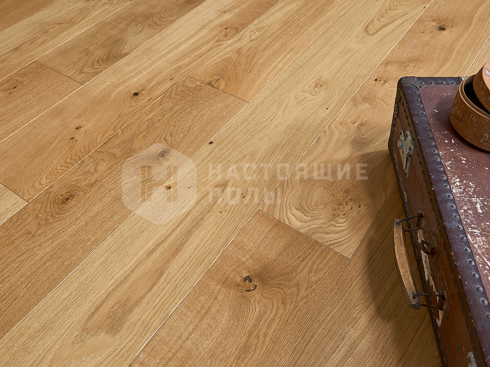 Дуб имеет селекцию Интенсо или, другими словами, это светлая и темная древесина французского дуба, с черными сучками, заполненными сучками, с частично раскрытыми сучками, отлично видны все изменения цвета, трещины, заболонь без ограничений, голубоватая заболонь. Эта селекция отражает все характеристики древесины без ограничений.