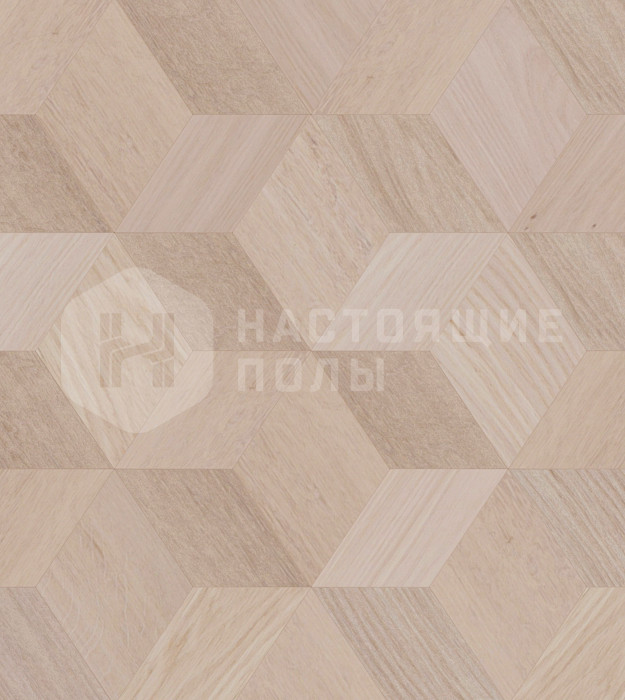 Мозаичный паркет Coswick Ромб Белые ночи 1197-3842-20 Дуб Акварельный белый рустикальный 1 Коммон шелковое масло ультраматовое, 220*190*15 мм