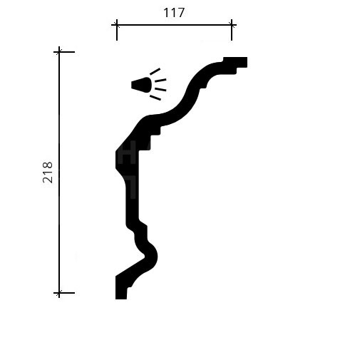 Изготовлен из пенополиуретана — легкого и прочного материала, который долго сохраняет внешний вид и не требует сложного ухода. Размеры карниза — 2000 мм в длину, 117 мм в высоту и 218 мм в ширину — позволяют использовать его в помещениях с стандартными оконными проемами. Карниз производства российской компании «Европласт» отлично впишется в любой интерьер и поможет создать гармоничный образ.