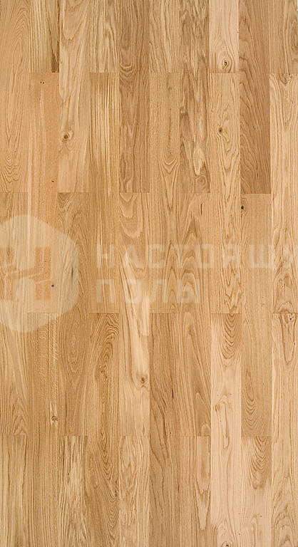 Формат паркета, когда верхний слой доски - это единый пласт благородной древесины, как здесь, например. Вне зависимости от ширины, именно такие декоры считаются самыми интересными. Здесь есть где показать всю красоту дерева, переходы цвета, селекцию, сучки и другие особенности древесины. Все новые цвета сначала выпускаются в однополосном формате, а уже потом, если дизайн пользуется популярностью, его повторяют в менее дорогих вариантах.