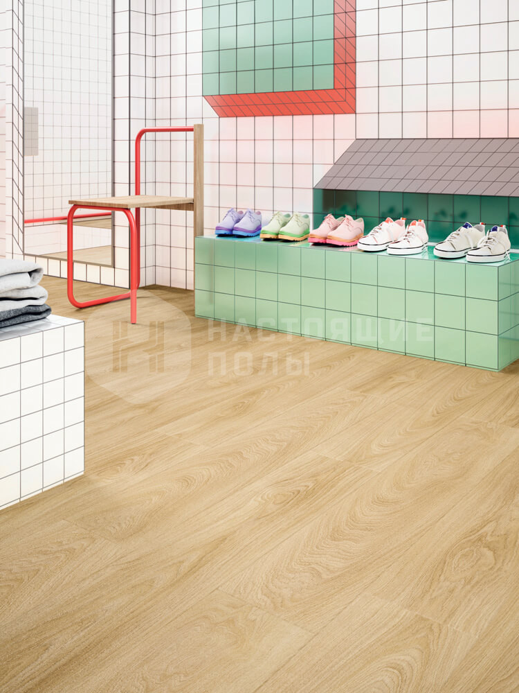 Коллекция Impress бельгийского бренда Moduleo - серия из 22 стильных и реалистичных декоров ПВХ-плитки. У Moduleo Impress рельефная поверхность с точным тиснением, которое повторяет натуральную шероховатость дерева. На ощупь поверхность похожа на масляное покрытие у паркета - такая же мягкая и приятная. Кроме естественной зернистости, на поверхности попадаются сучки и узелки - как следы спиленных веточек - пол выглядит по-природному стильно и живо. Впечатляюще натурально, а главное - подходит ко всем помещениям без исключений: от прихожей, кухни и ванной у вас дома до школы, офиса или буфета.