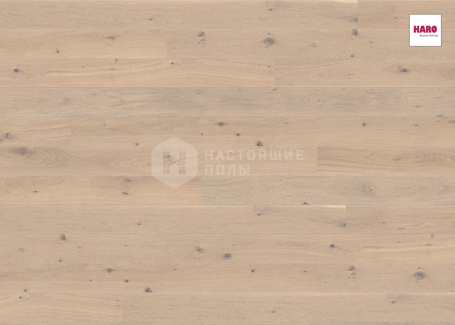 Паркетная доска Haro Parquet 528139 Дуб Жемчужно-белый выбеленный Саваж брашированный однополосный