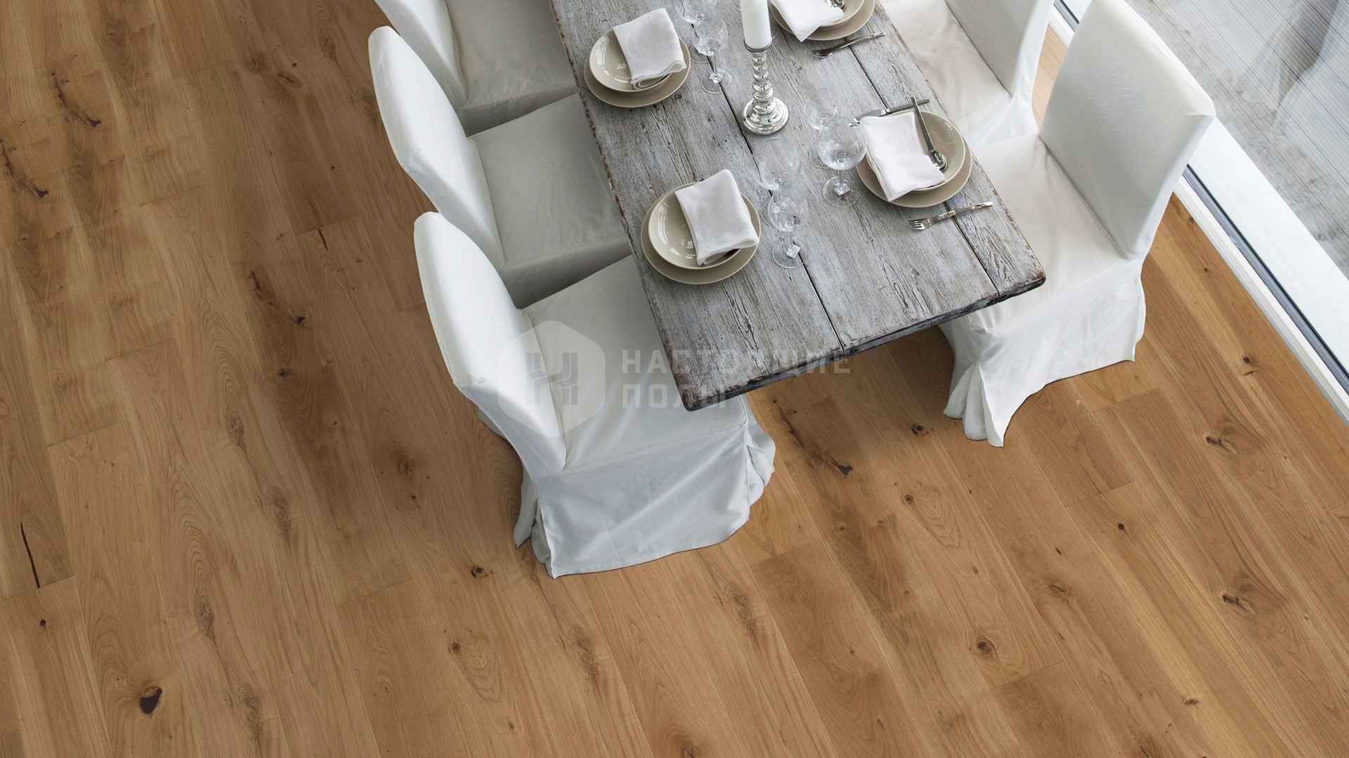 Формат паркета, когда верхний слой доски - это единый пласт благородной древесины, как здесь, например. Вне зависимости от ширины, именно такие декоры считаются самыми интересными. Здесь есть где показать всю красоту дерева, переходы цвета, селекцию, сучки и другие особенности древесины. Все новые цвета сначала выпускаются в однополосном формате, а уже потом, если дизайн пользуется популярностью, его повторяют в менее дорогих вариантах.