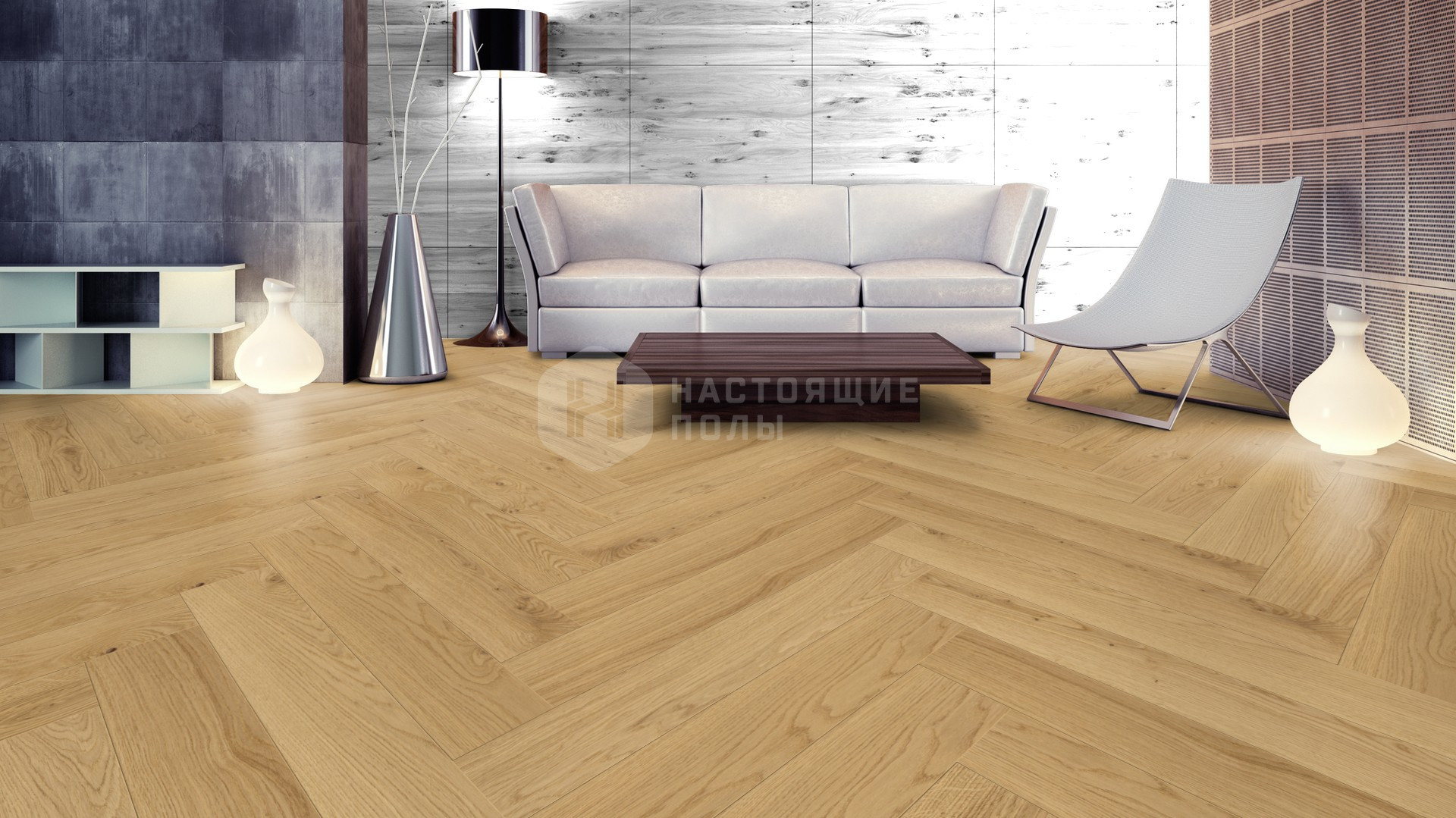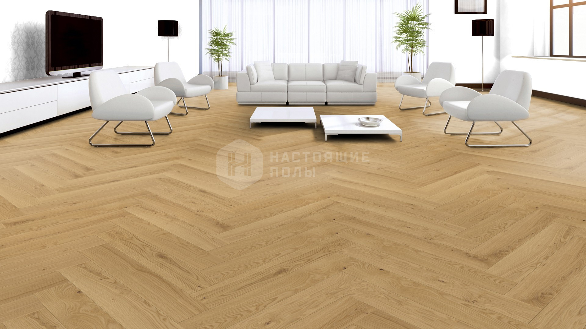 Паркет английская елочка Weitzer Parkett WP 475 63662 Дуб Чистый натур брашированный, масло воск ProActive+, 750*125*12.2 мм
