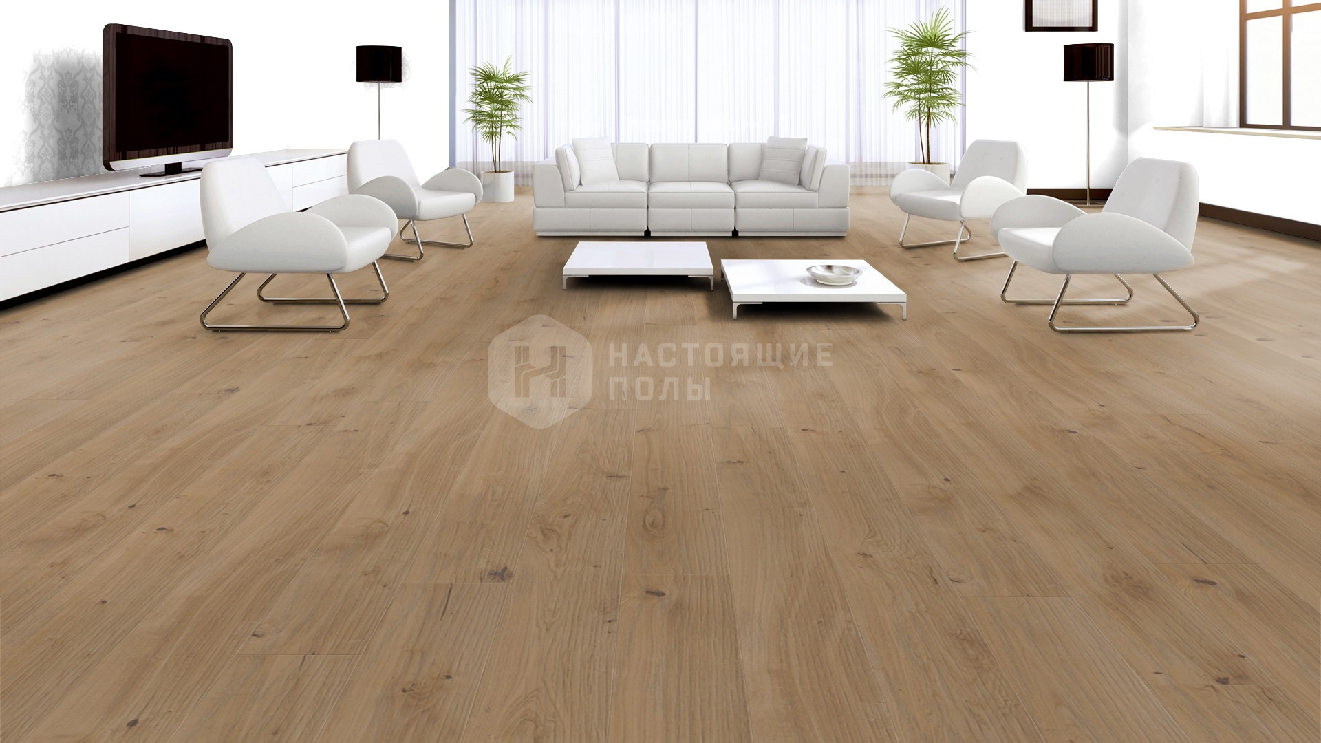 Формат паркета, когда верхний слой доски - это единый пласт благородной древесины, как здесь, например. Вне зависимости от ширины, именно такие декоры считаются самыми интересными. Здесь есть где показать всю красоту дерева, переходы цвета, селекцию, сучки и другие особенности древесины. Все новые цвета сначала выпускаются в однополосном формате, а уже потом, если дизайн пользуется популярностью, его повторяют в менее дорогих вариантах.