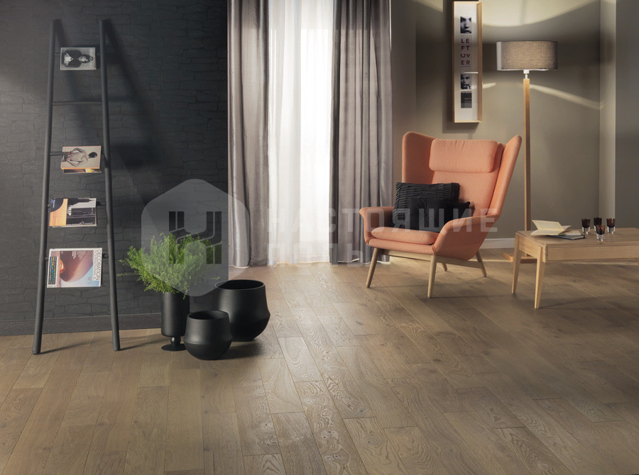 декор, рожденный из одновременно простого и необычного сочетания серого и коричневого оттенков, закрепленных несколькими слоями масла на брашированной поверхности французского дуба. Используемое для создания этого декора масло не закупоривает поры древесины и позволяет материалу дышать. Чтобы ваши полы под маслом на рассыхались от смены климата в помещении, требуется время от времени обновлять масляное покрытие, нанесенное при производстве. Эта простая процедура обеспечит вашему полу внешний вид, как в день покупки, на многие годы.