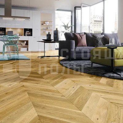 Паркет Французская елочка Barlinek Chevron Дуб Freshy брашированный матовый лак, 725*130*14 мм