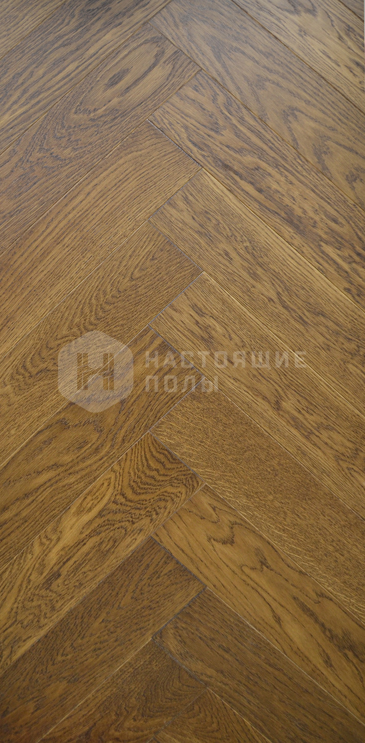 Паркет Елочка Goldenwood Дуб Шоколад Натур матовый лак, 600*110*12.2 мм