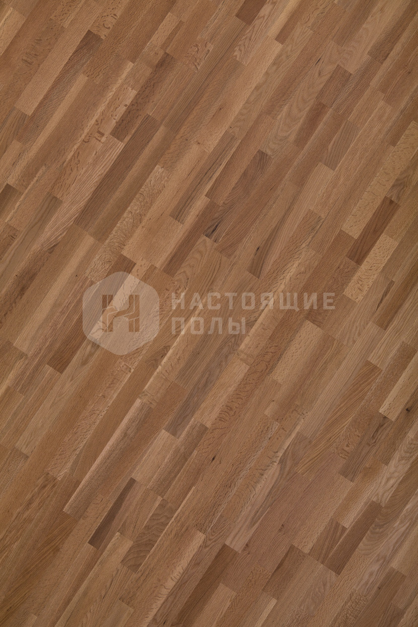 это когда на одной доске паркета три параллельных ряда ламелей. Чтобы уложенный пол смотрелся более живо, ламели делаются разной длины и перемешиваются между собой, когда идет сборка верхнего слоя доски. В трехполосном паркете ламели, как правило, довольно узкие (не шире 7 см), это позволяет регулировать селекцию всего пола. Маленькие досочки проще сортировать, чтобы получить либо ровную, спокойную селекцию, либо живой декор в стиле рустик.