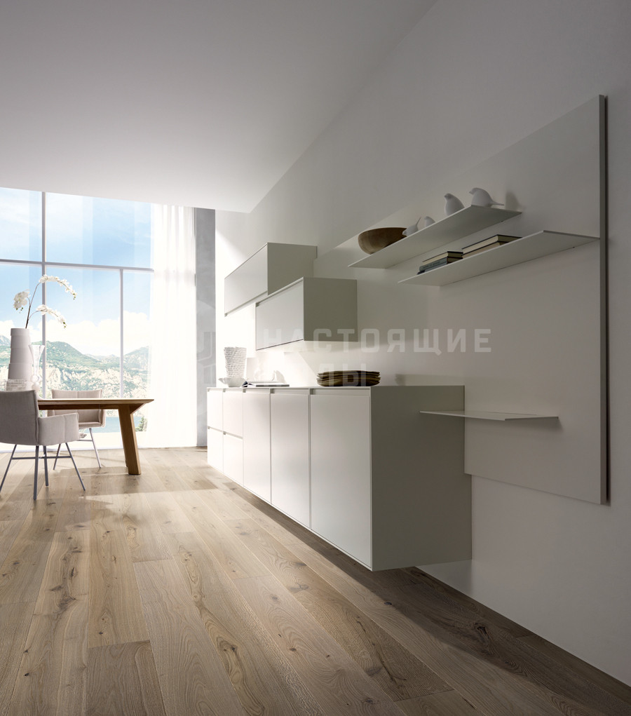 Формат паркета, когда верхний слой доски - это единый пласт благородной древесины, как здесь, например. Вне зависимости от ширины, именно такие декоры считаются самыми интересными. Здесь есть где показать всю красоту дерева, переходы цвета, селекцию, сучки и другие особенности древесины. Все новые цвета сначала выпускаются в однополосном формате, а уже потом, если дизайн пользуется популярностью, его повторяют в менее дорогих вариантах.