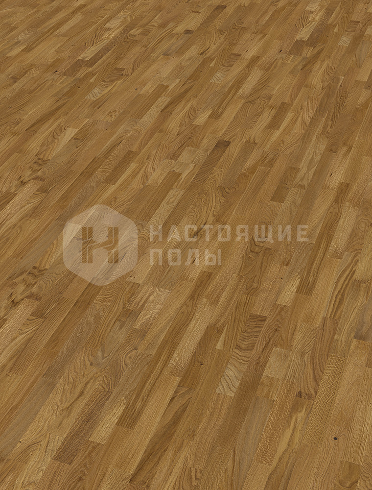 это когда на одной доске паркета три параллельных ряда ламелей. Чтобы уложенный пол смотрелся более живо, ламели делаются разной длины и перемешиваются между собой, когда идет сборка верхнего слоя доски. В трехполосном паркете ламели, как правило, довольно узкие (не шире 7 см), это позволяет регулировать селекцию всего пола. Маленькие досочки проще сортировать, чтобы получить либо ровную, спокойную селекцию, либо живой декор в стиле рустик.