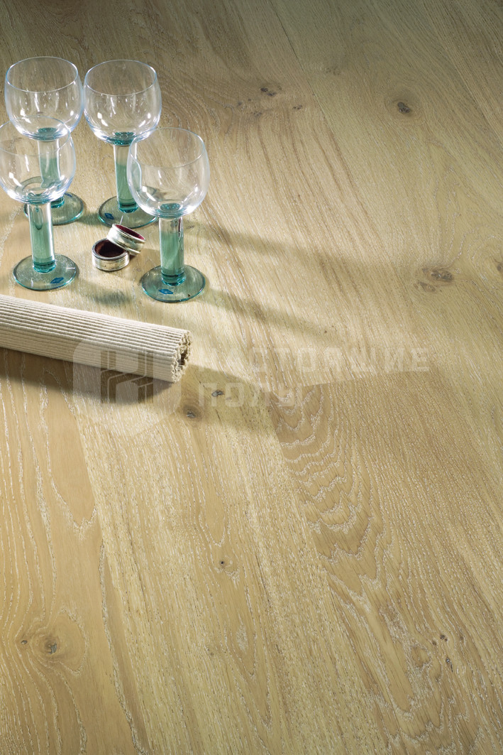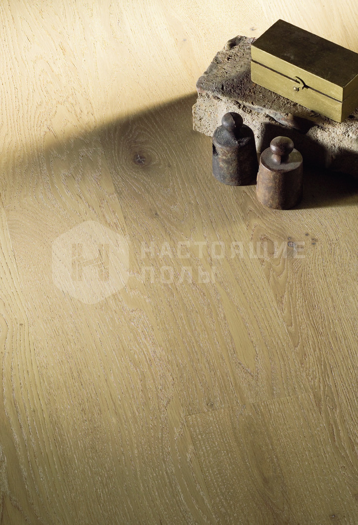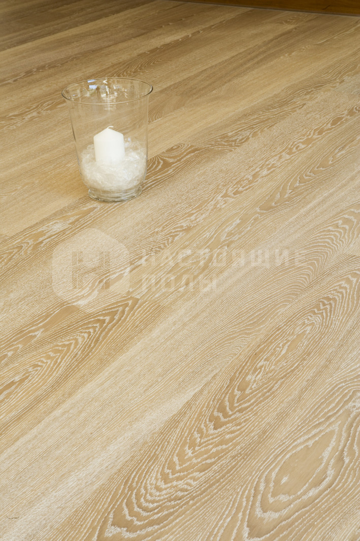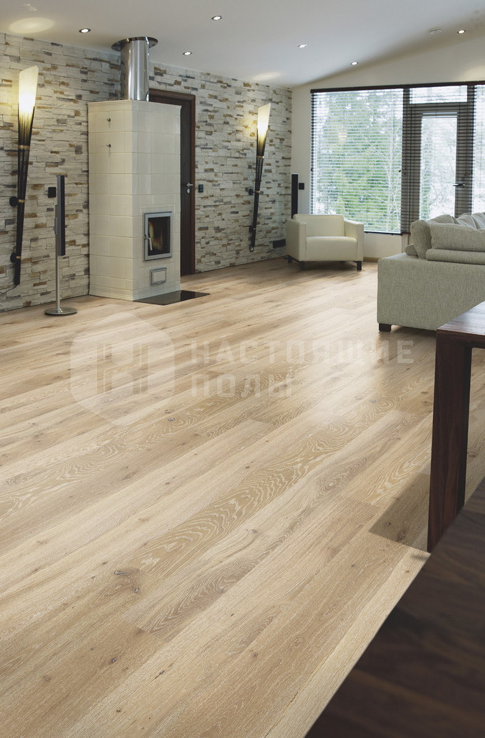 Паркетная доска Karelia Стори Дуб Стоунвош Айвори однополосный 138 мм входит в коллекцию Dawn.