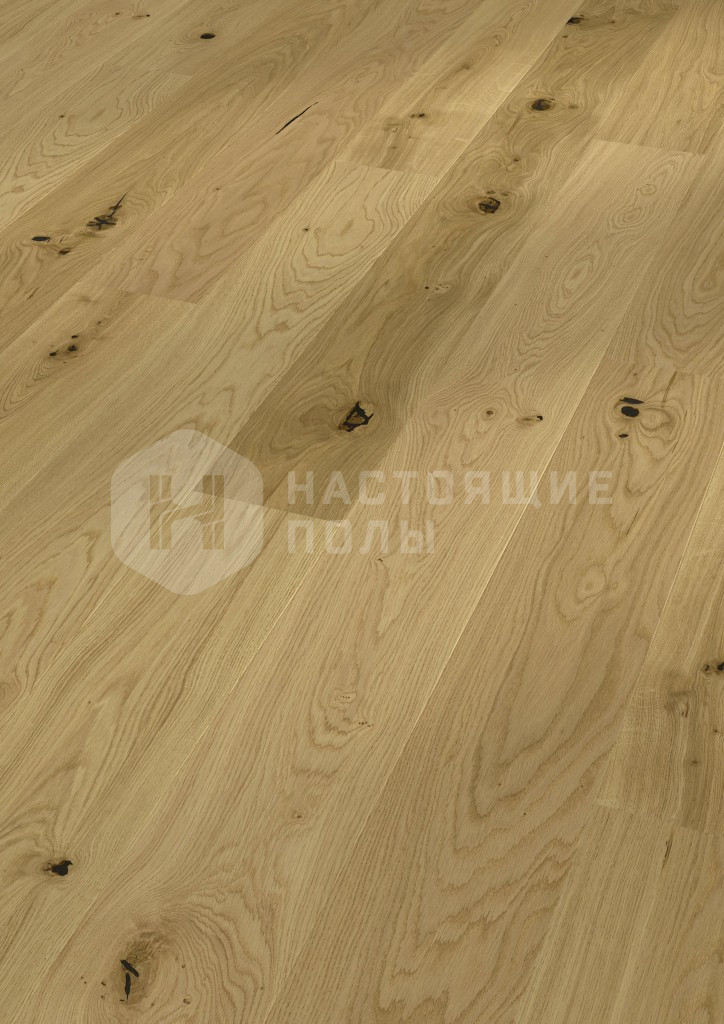 Формат паркета, когда верхний слой доски - это единый пласт благородной древесины, как здесь, например. Вне зависимости от ширины, именно такие декоры считаются самыми интересными. Здесь есть где показать всю красоту дерева, переходы цвета, селекцию, сучки и другие особенности древесины. Все новые цвета сначала выпускаются в однополосном формате, а уже потом, если дизайн пользуется популярностью, его повторяют в менее дорогих вариантах.