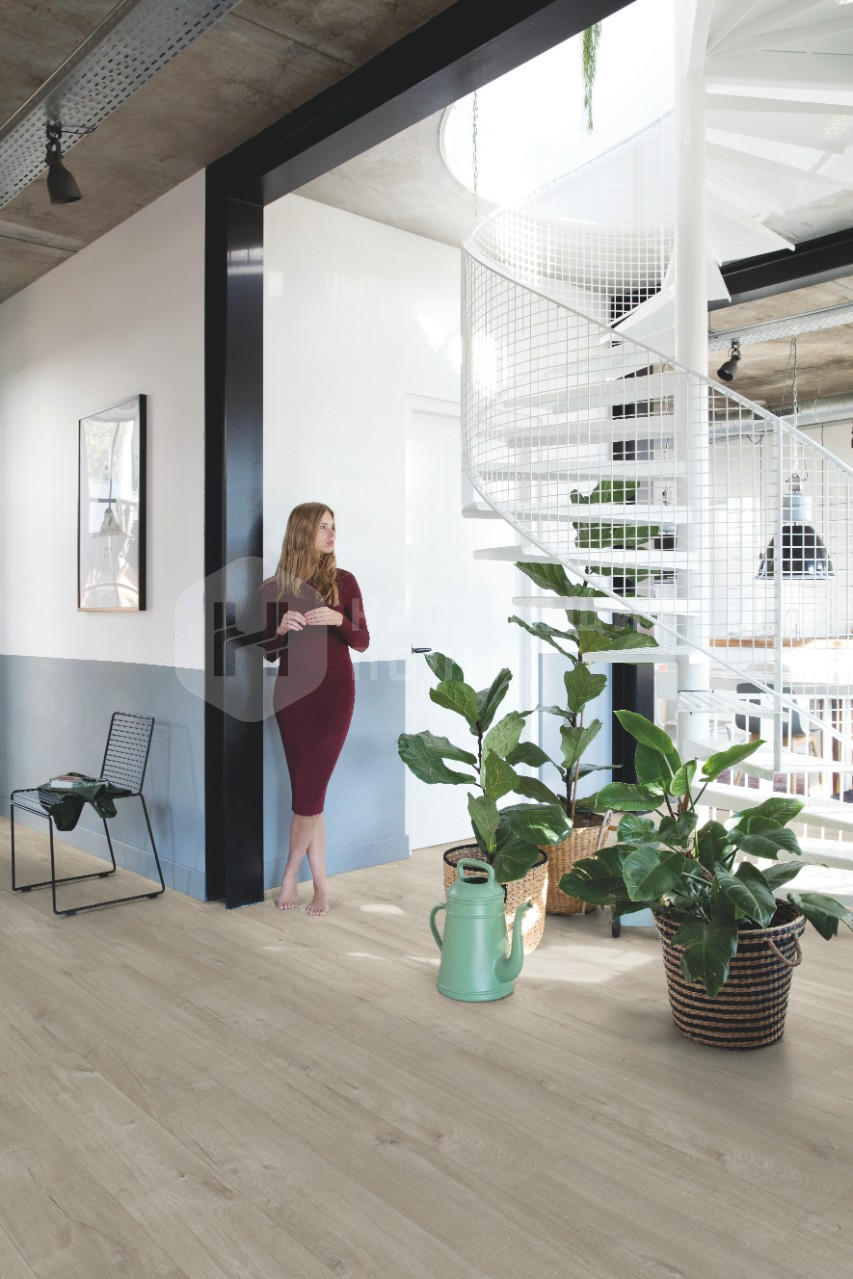 ПВХ плитка замковая Quick-Step Livyn Pulse Click PUCL40105 Дуб Хлопковый Светло-серый