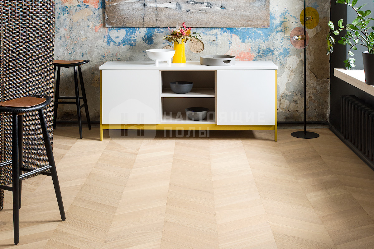Паркет Coswick Французская елка 45 градусов Дуб Ванильный Селект энд Бэттер шелковое масло, 530*107.95*15 мм