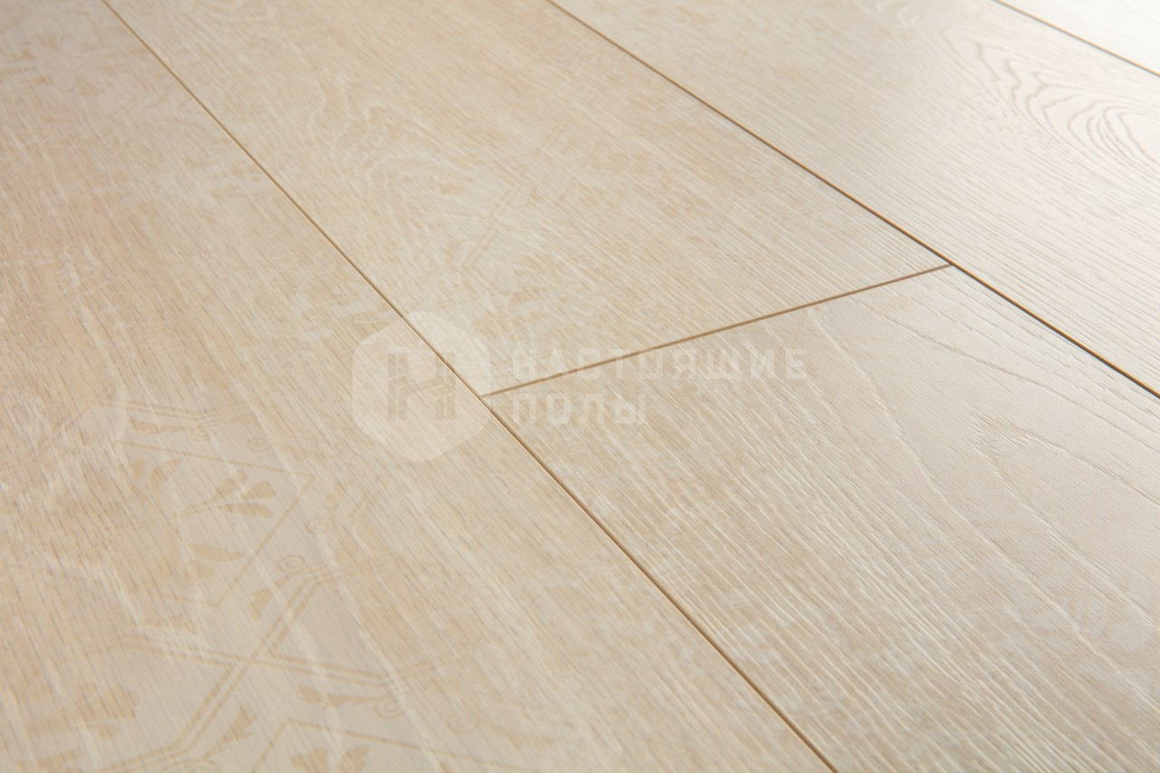 Quick-Step стал первым ламинированным покрытием, у которого появились фаски по периметру доски, которые не только подчеркивают геометрию пола, но и скрывают эффект поднятия кромок - слабое место ламината.